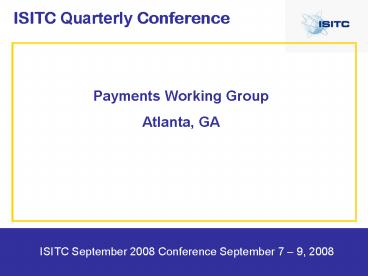 <Notice: Removed> ISITC September 2008 Conference September 7 PowerPoint PPT Presentation