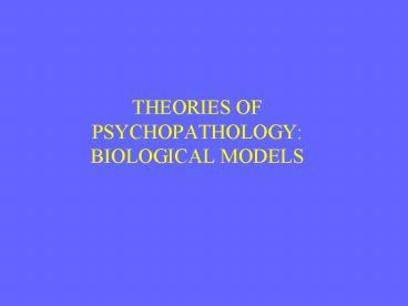 Title: THEORIES OF PSYCHOPATHOLOGY: BIOLOGICAL MODELS