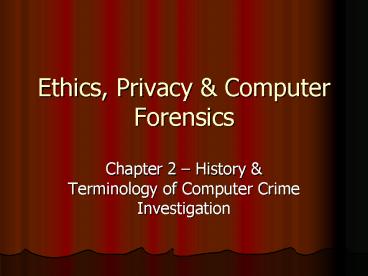 Ethics, Privacy Computer Forensics