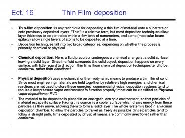 Ect' 16 Thin Film deposition PowerPoint PPT Presentation