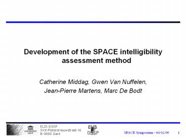 <Notice: Removed> Development of the SPACE intelligibility assessment method PowerPoint PPT Presentation