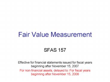 fiscal years beginning after November 15, 2007 - For non-financial assets, delayed to For fiscal