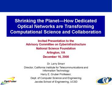 Calit2 (UCSD, UCI), SDSC, and UIC LeadsLarry