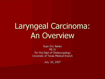 <Notice: Removed> Laryngeal Carcinoma: An Overview PowerPoint PPT Presentation
