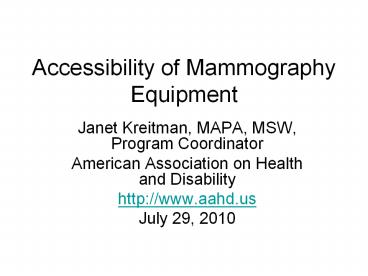 Accessibility of Mammography Equipment PowerPoint PPT Presentation