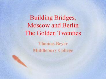 ? Building Bridges, Moscow and Berlin The Golden Twenties PowerPoint PPT Presentation