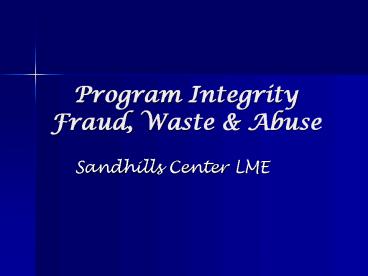 <Notice: Removed> Program Integrity Fraud, Waste PowerPoint PPT Presentation