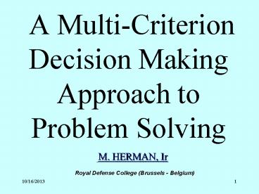 <Notice: Removed> A Multi-Criterion Decision Making Approach to Problem Solving PowerPoint PPT Presentation