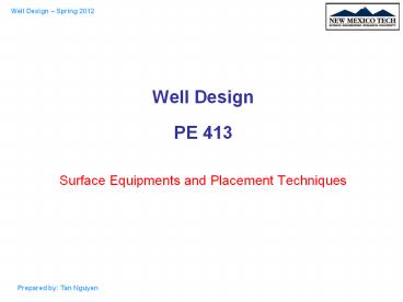 - Surface Equipments and Placement Techniques