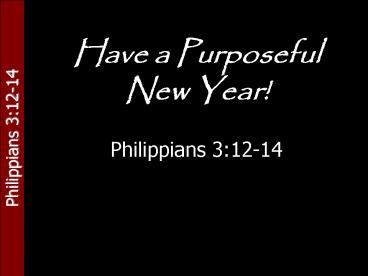 <Notice: Removed> Have a Purposeful New Year! Philippians 3:12-14 PowerPoint PPT Presentation