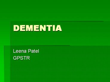 <Notice: Removed> DEMENTIA PowerPoint PPT Presentation