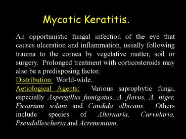Mycotic Keratitis. PowerPoint PPT Presentation