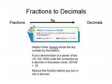 Mixed Numbers to decimals 3 3/4 Keep the whole
