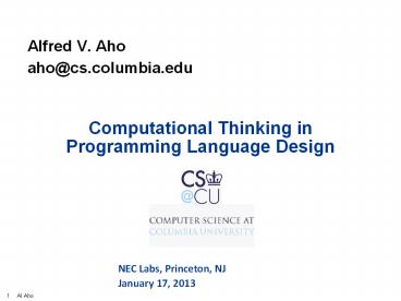 <Notice: Removed> Computational Thinking in Programming Language Design PowerPoint PPT Presentation