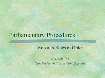 <Notice: Removed> Parliamentary Procedures PowerPoint PPT Presentation