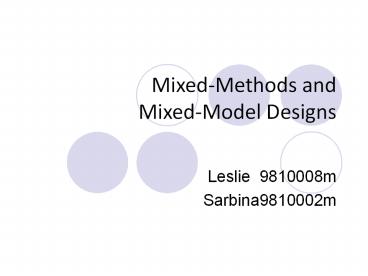 <Notice: Removed> Mixed-Methods and Mixed-Model Designs PowerPoint PPT Presentation