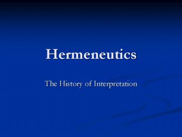Hermeneutics PowerPoint PPT Presentation