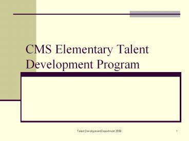 <Notice: Removed> CMS Elementary Talent Development Program PowerPoint PPT Presentation