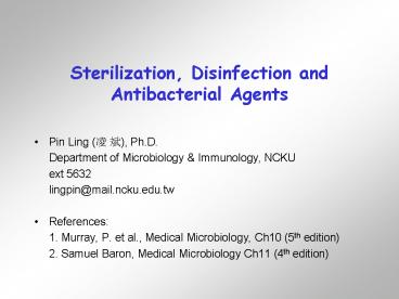 Title: Sterilization, Disinfection and Antibacterial Agents