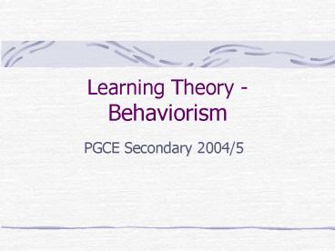 <Notice: Removed> Learning Theory - Behaviorism PowerPoint PPT Presentation