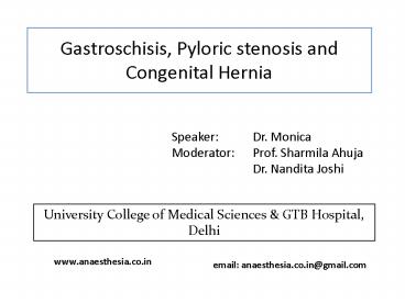 Title: Gastroschisis, Pyloric stenosis and Congenital Hernia