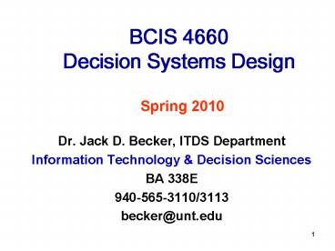 <Notice: Removed> BCIS 4660 Decision Systems Design PowerPoint PPT Presentation