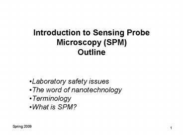 Title: Introduction to Sensing Probe Microscopy (SPM) Outline