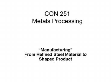 1CON 251 Metals Processing