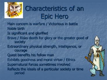 Characteristics of an Epic Hero PowerPoint PPT Presentation