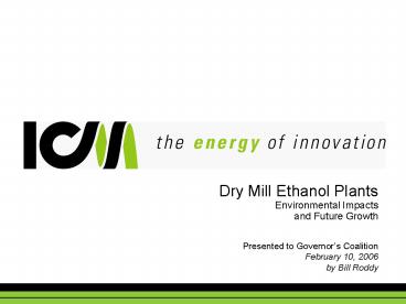 1Dry Mill Ethanol Plants Environmental Impacts and