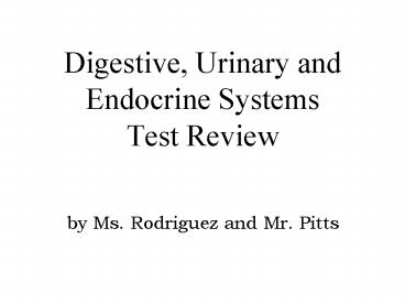 Title: Digestive, Urinary and Endocrine Systems Test Review