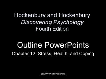Hockenbury and Hockenbury Discovering Psychology Fourth Edition PowerPoint PPT Presentation