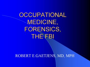 <Notice: Removed> OCCUPATIONAL MEDICINE, FORENSICS, THE FBI PowerPoint PPT Presentation