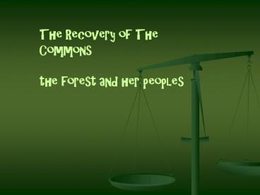 1The Recovery of The Commons the forest and her