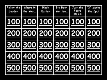 Follow the Leader Where in the War Black Easter Its Been Written Just the Facts Maam X Marks the Spot