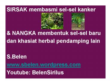 Title: SIRSAK membasmi sel-sel kanker