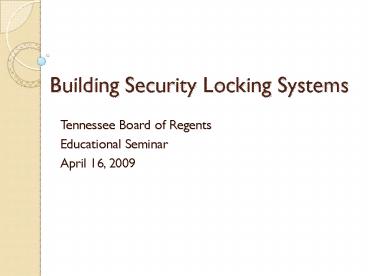 <Notice: Removed> Building Security Locking Systems PowerPoint PPT Presentation