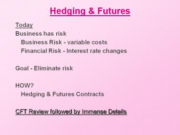 like to lock in that price, what would you do? - Since you are long in Wheat, you will need to go