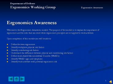 Title: Department of Defense Ergonomics Working Group Ergonomics Awareness