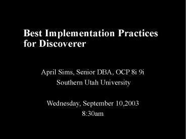 Best Implementation Practices for Discoverer PowerPoint PPT Presentation