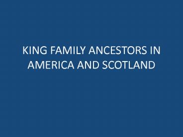 Title: KING FAMILY ANCESTORS IN AMERICA AND SCOTLAND
