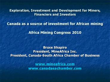 <Notice: Removed> Exploration, Investment and Development for Miners, Financiers and Investors Canada as a source of investment for African mining Africa Mining Congress 2010 PowerPoint PPT Presentation