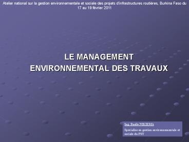 Title: LE MANAGEMENT ENVIRONNEMENTAL DES TRAVAUX