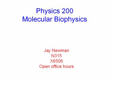 1Physics 200Molecular Biophysics