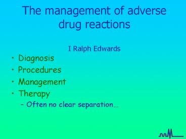 Title: The management of adverse drug reactions I Ralph Edwards
