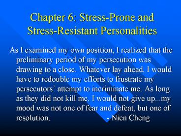 Title: Chapter 6: Stress-Prone and Stress-Resistant Personalities