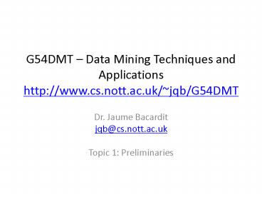 1G54DMT Data Mining Techniques and