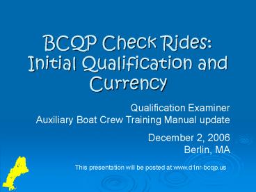 Title: BCQP Check Rides: Initial Qualification and Currency