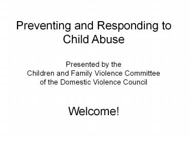 <Notice: Removed> Preventing and Responding to Child Abuse Presented by the Children and Family Violence Committee of the Domestic Violence Council Welcome! PowerPoint PPT Presentation