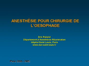 1ANESTHÉSIE POUR CHIRURGIE DE LOESOPHAGE